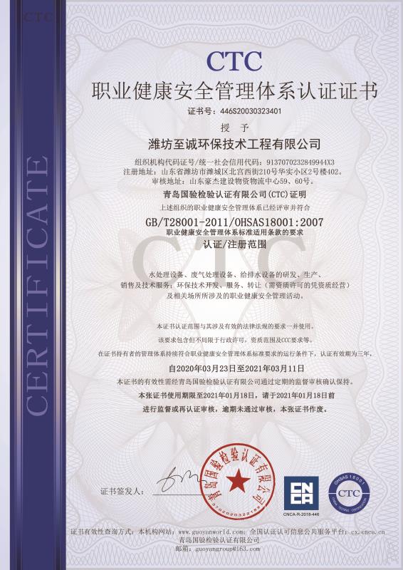 | 職業(yè)健康安全管理體系認(rèn)證證書 |